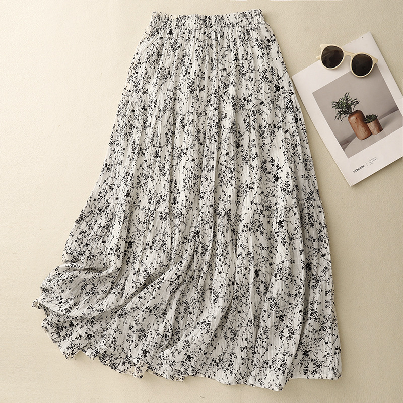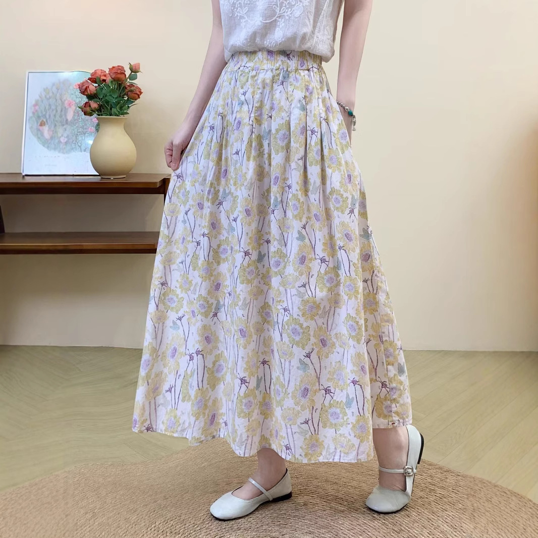 Rok Setengah Badan Model Baru Musim Panas Rok Besar Katun Bercorak Digital Bunga Bercorak Ukuran Besar Rok Setengah Longgar Ukuran Besar 98636