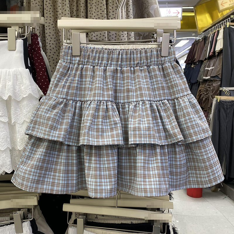 Rok Setengah Badan Kotak-Kotak Ukuran Besar Rok Kue Pinggang Tinggi Wanita Gemuk Model Baru 2025 Gaya Menutupi Daging Terlihat Kurus Gaya Ins