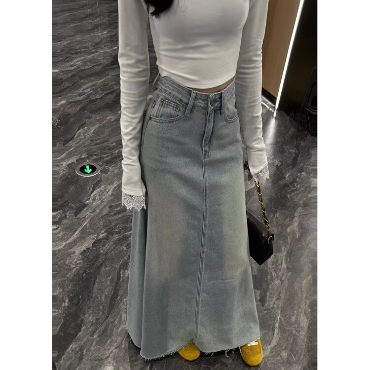 Rok Denim Perpanjang Ayun Besar Cuci Pinggang Tinggi Gaya Korea Rok Setengah Badan Terlihat Langsing Modis Versi Korea Wanita Gemuk Model Baru Musim Semi 2025