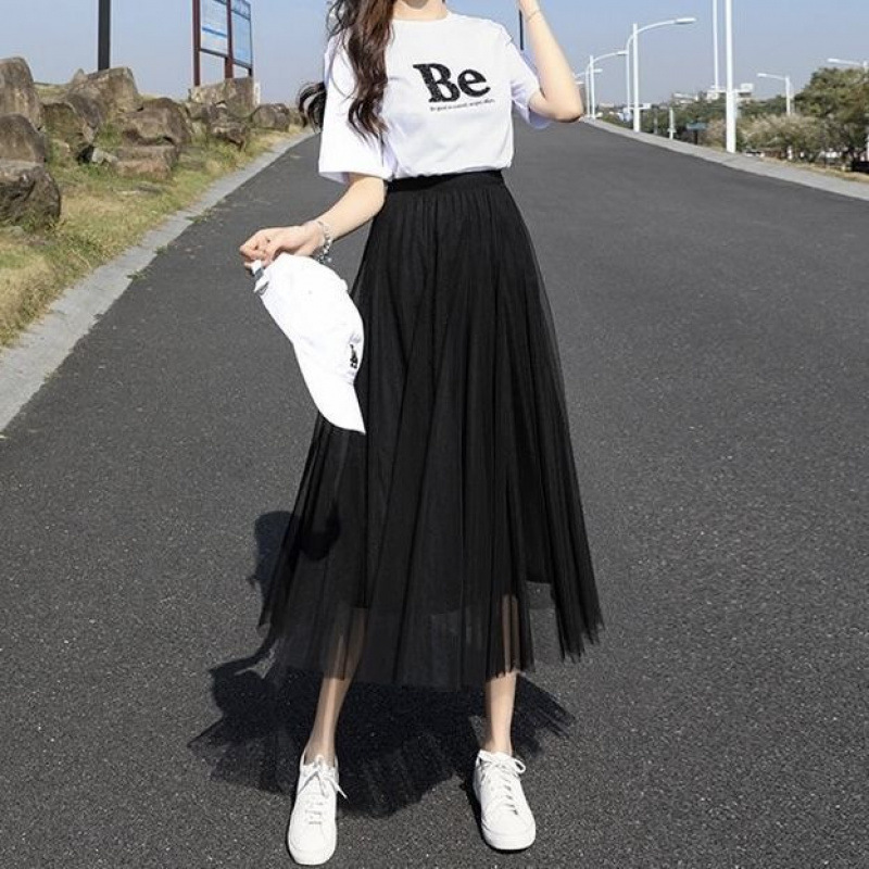 Kasa Jaring Peri Tidak Teratur Musim Semi Musim Panas 2025 Rok Setengah Badan Jaring Terlihat Terlihat Ukuran Besar Trendi Pinggang Tinggi