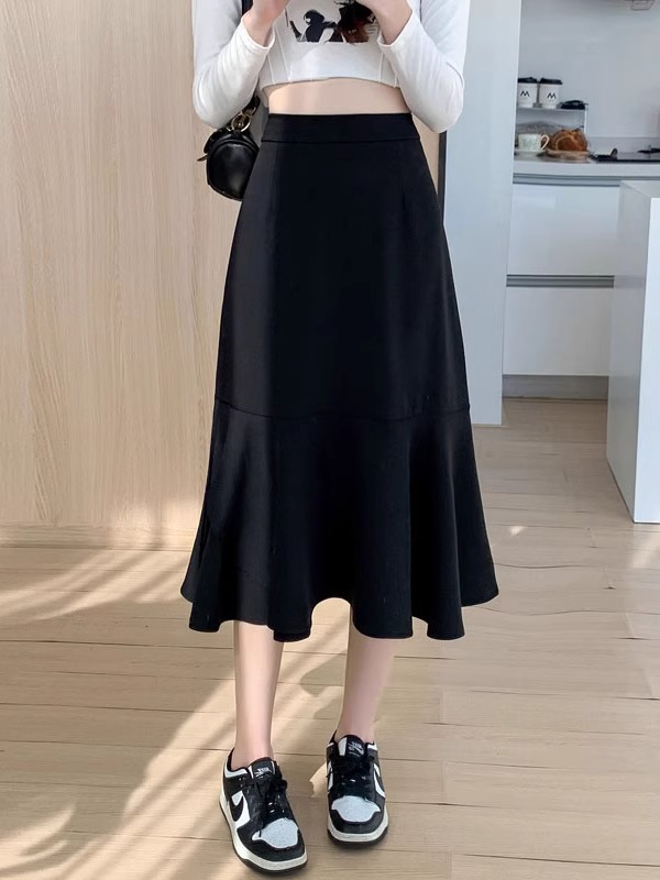 Rok Setengah Badan Ekor Ikan Warna Hitam Model Baru Musim Semi Mm2025 Ukuran Besar Rok Panjang A-line Model Populer Tahun Ini Wanita