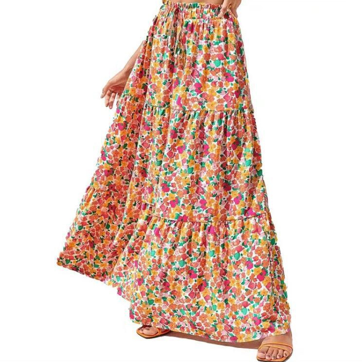 Rok wanita Eropa dan Amerika lintas batas AliExpress Amazon pakaian wanita musim panas Eropa dan Amerika rok pinggang tinggi cetak wanita baru a-line