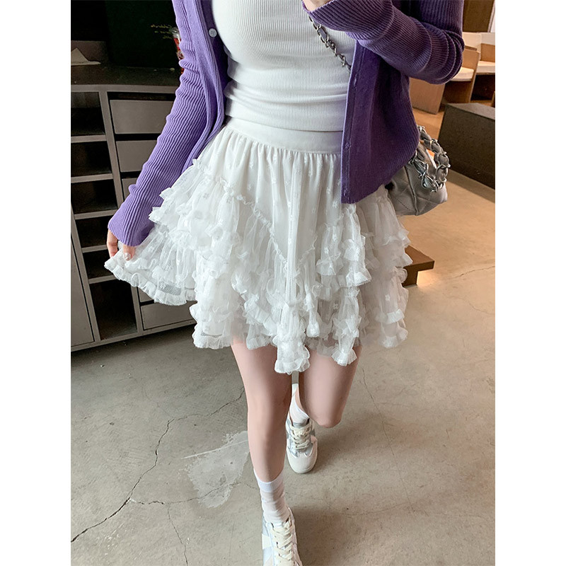 Rok Pendek Kue Berbulu Renda Warna Putih Rok Benang Huruf A Orang Kecil Terlihat Ramping Pinggang Tinggi Lapisan Dalam Ukuran Besar Model Baru Musim Panas Wanita