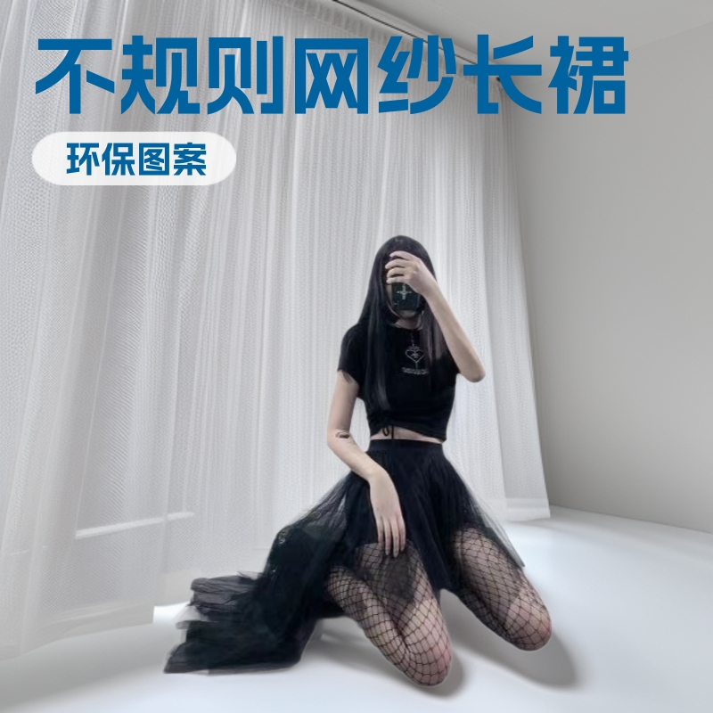Rok kasa hitam panjang wanita, rok jala desain tidak beraturan, Rok gadis ringan angin gelap