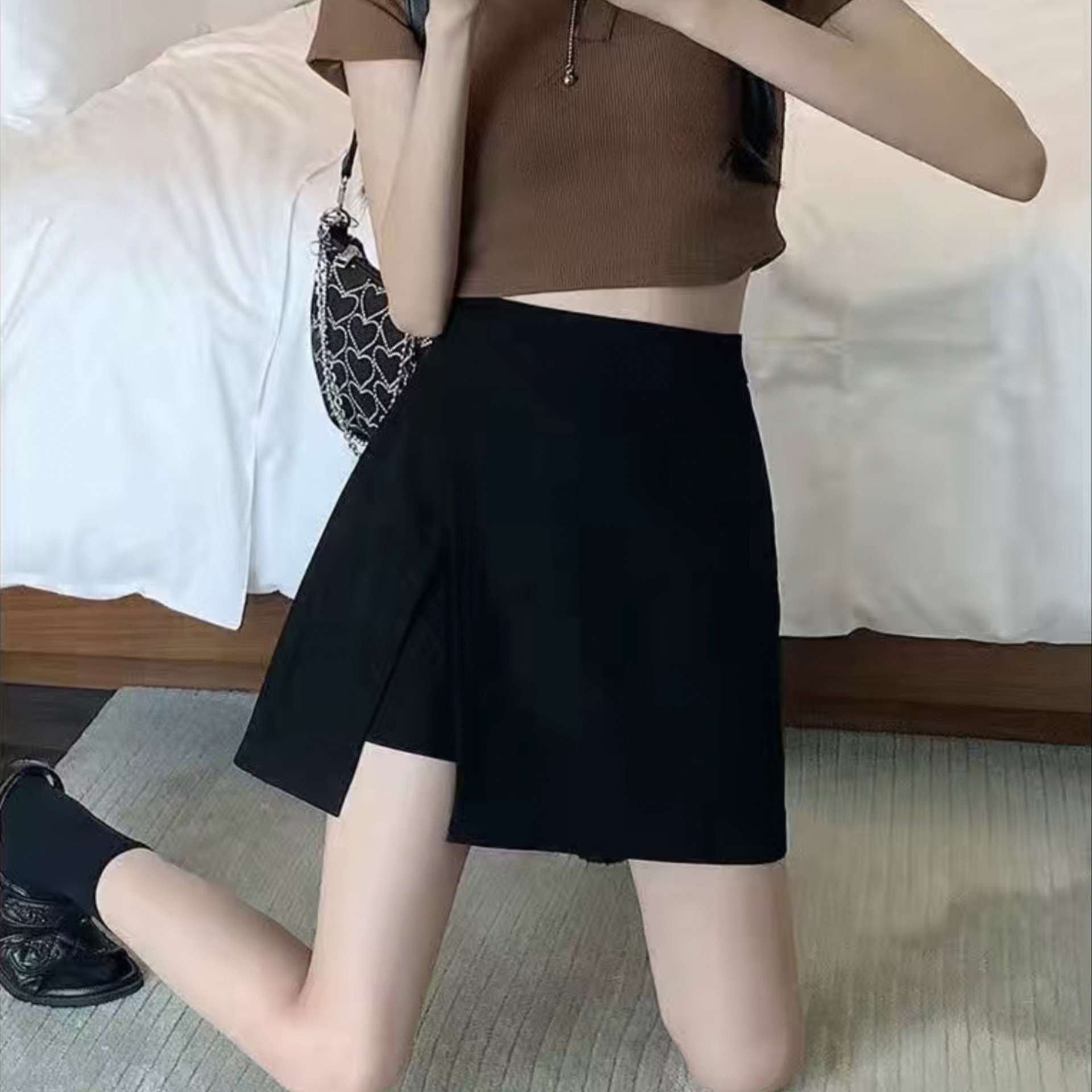 Rok Setengah Badan Bercabang Hitam Ukuran Besar Rok Pendek Terlihat Langsing Pinggang Tinggi Wanita Gemuk Model Baru Musim Panas 2025 Rok Celana Rok A-Line Tidak Beraturan
