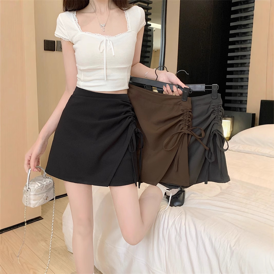 Rok Setengah Badan Wanita Rok Pendek Anti Terang Musim Panas Rok A-Line Warna Hitam Terlihat Kurus Mudah Dipadu Padan Pinggang Tinggi Celana Rok Pendek Modis Ukuran Besar