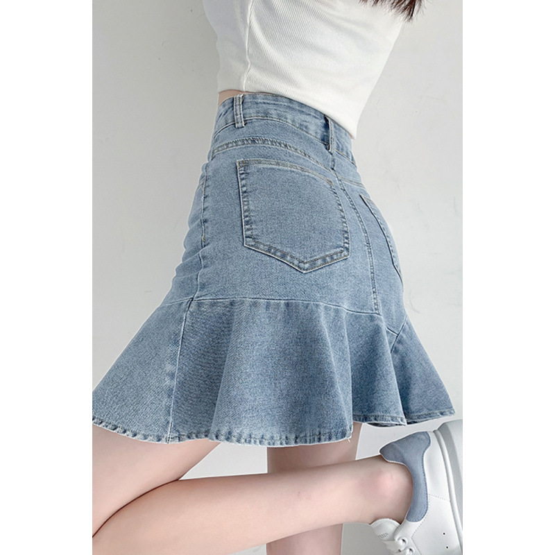 Rok Setengah Badan Denim Ukuran Besar Wanita Rok Ekor Ikan Menutupi Pinggang Pinggang Tinggi Terlihat Ramping Model Baru 2025 Musim Panas Wanita