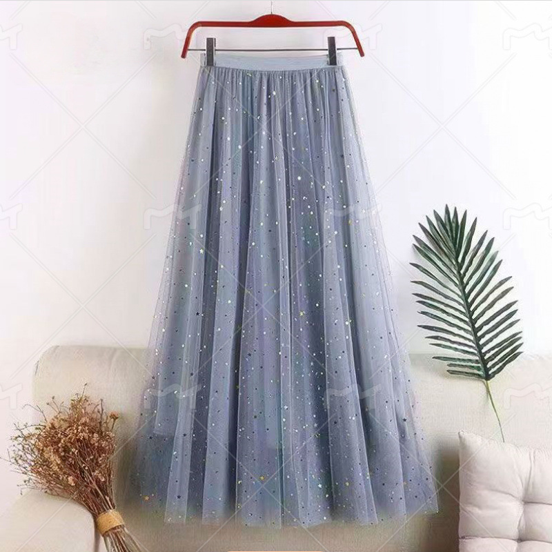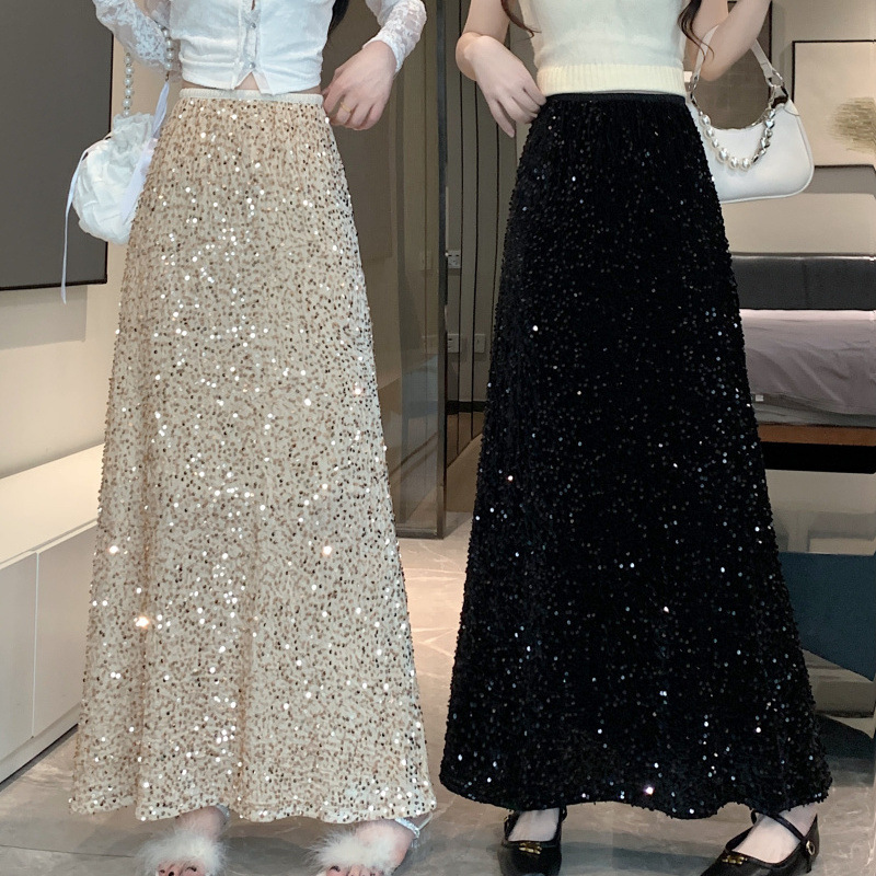 Pakaian Wanita Ukuran Besar Rok Setengah Badan Wanita Gemuk Berpayet Model Baru Musim Semi Rok Setengah Panjang Menutupi Pinggul
