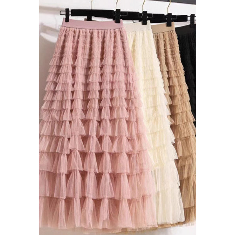 Rok Panjang Model Peri Rok Setengah Badan Kue Kasa Ukuran Besar Wanita Gemuk Elegan Warna Hitam