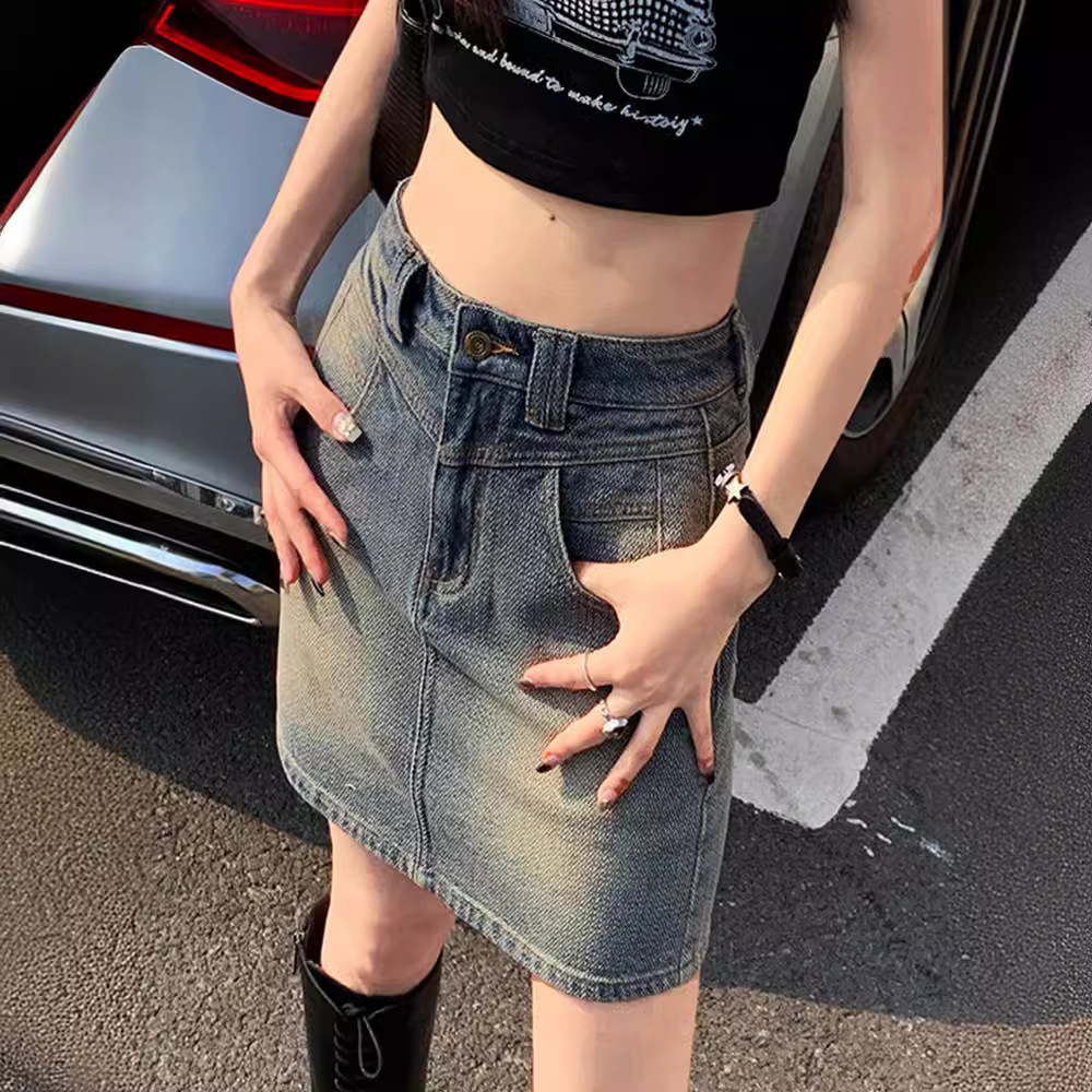 Rok Setengah Badan Denim Tensi Cantik Ukuran Besar Rok Setengah Huruf A Model Panjang Sedang Pinggang Tinggi Model Baru 2025 Musim Panas