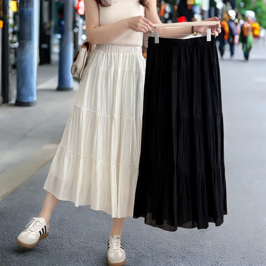 Pakaian Wanita Ukuran Besar Musim Semi dan Musim Panas 2025 Rok Kue Di Bawah Lutut Elegan Wanita Gemuk 200Kg Model Baru Rok Setengah Badan Santai 6491