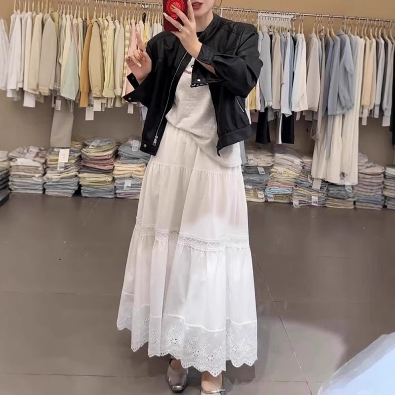 Rok Setengah Badan Warna Putih Jahitan Renda Rok A-Line Bentuk Buah Pir Ukuran Besar Wanita Gemuk Model Baru Musim Panas Tahun 2025 Wanita