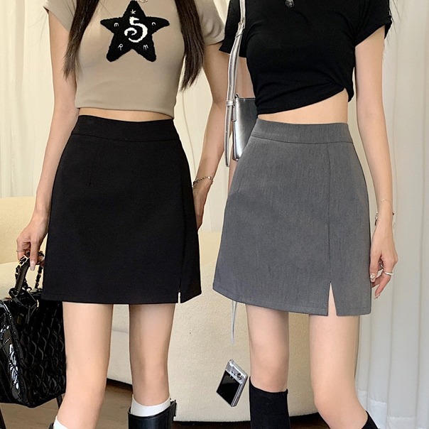 Rok garis A anti eksposur pinggang tinggi rok selubung terpisah wanita ukuran plus rok setelan kuliah ceruk gadis gemuk musim panas
