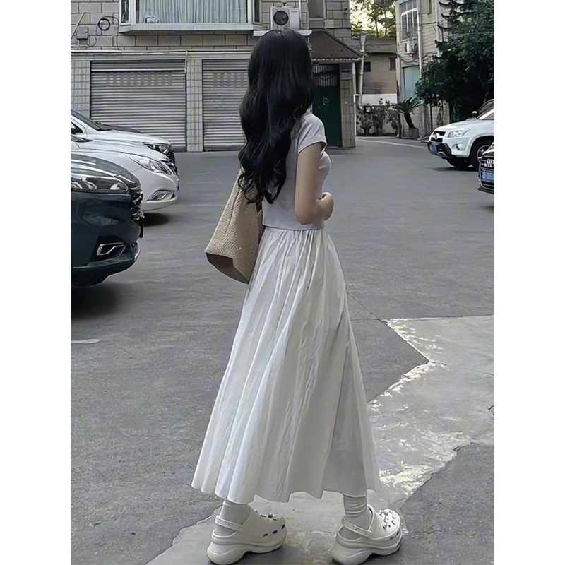 Rok Setengah Badan Warna Putih Rok Panjang A-Line Gaya Yamamoto Ukuran Besar Wanita Gemuk Musim Panas Musim Semi Rok Panjang Model Panjang Sedang Pinggang Tinggi Rok Setengah Panjang Terjatuh