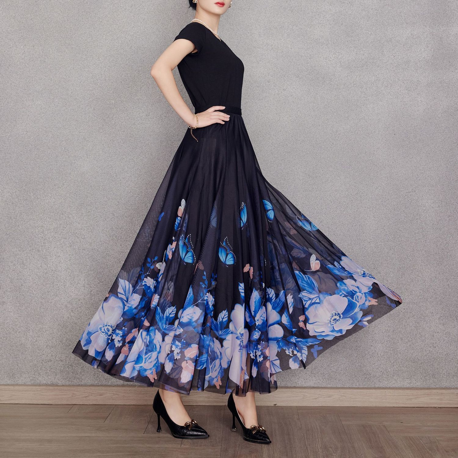 Rok Setengah Badan Awal Musim Gugur Terlihat Langsing Model Baru Rok Menari Tari Lapangan Besar Gaya Jatuh Model Panjang Rok Jaring Gradien Rok Gemuk mm
