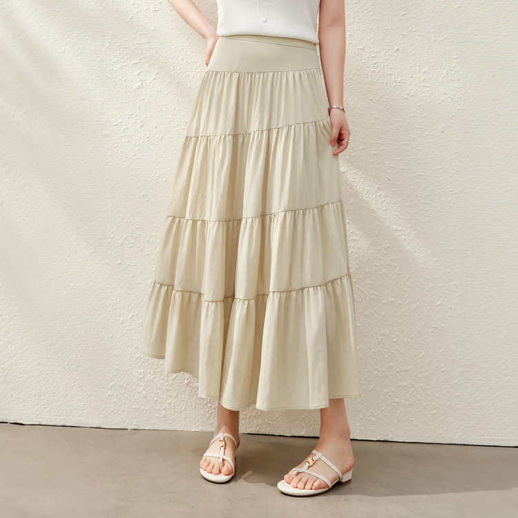 Gaun a-line ukuran plus, Rok lipit sutra es Tencel serbaguna 2024 pinggang tinggi
