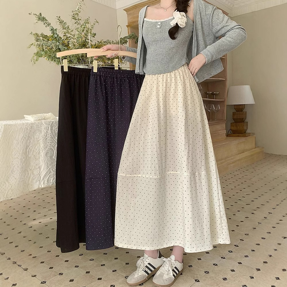 Rok panjang empat musim untuk wanita, rok panjang ramping pinggang tinggi bergaya Korea ukuran ekstra besar empat musim