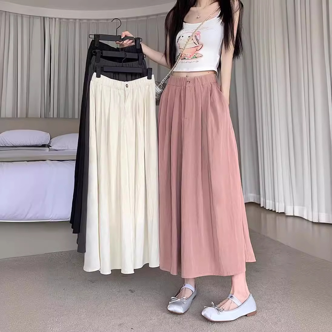 Rok Lipit Versi Korea Model Baru Musim Semi Musim Panas dan Musim Gugur 2025 Pakaian Wanita Ukuran Besar Modis Warna Polos Pinggang Tinggi Rok Slim-fit Kasual