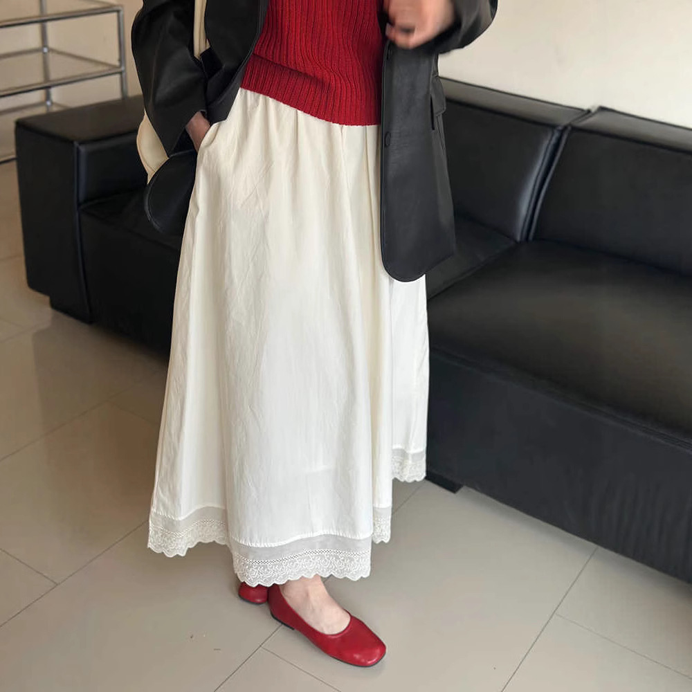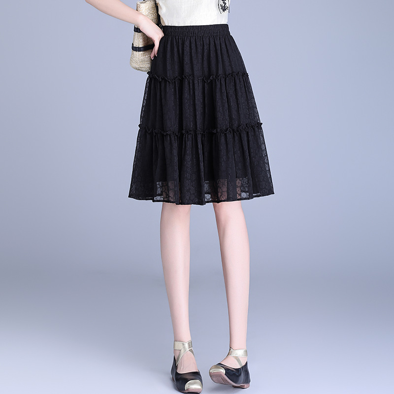 Cheongsam Ukuran Besar Rok Pinggang Tinggi Rok Setengah Badan Berongga Renda Rok Dalaman Model Panjang Sedang Mudah Dipadu Padan Model Baru