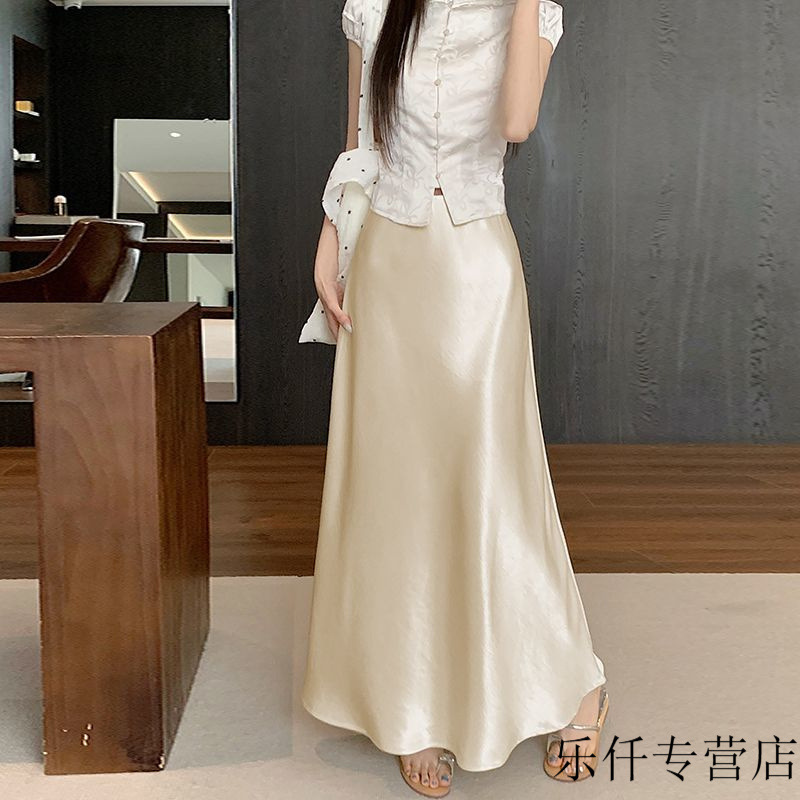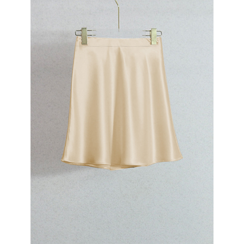Rok Setengah Badan Tergelincir Sutra Ukuran Besar Modis Rok A-Line Elegan Kelas Atas Terlihat Langsing Model Baru 2025 Musim Panas Wanita Rok Pendek