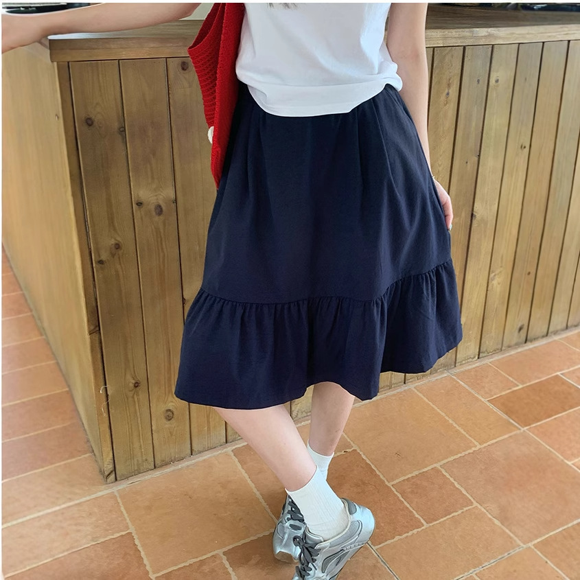 Pakaian Musim Panas 2025 Rok Setengah Badan Terlihat Langsing Pinggiran Daun Teratai Kombinasi Mudah Dipadu Padan Wanita Ukuran Besar Wanita Gemuk Model Baru
