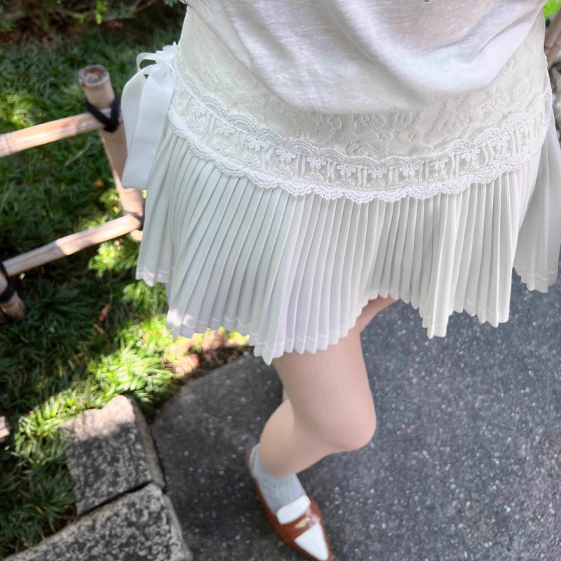 Rok Lipit Kue Mudah Dipadu Padan Gadis Murni Musim Semi 2025 Rok Pendek Tali Jahitan Renda Rok Setengah Badan Modis