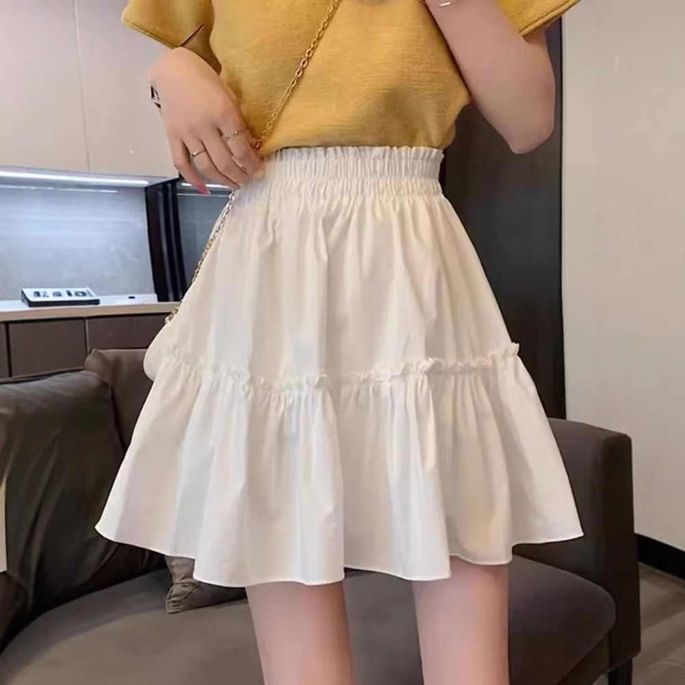 Niche Rok Pendek Setengah Badan A-Line Musim Panas Pinggang Tinggi Rok Lipit Pakaian Wanita Kecil Warna Putih Ukuran Besar Wanita Gemuk