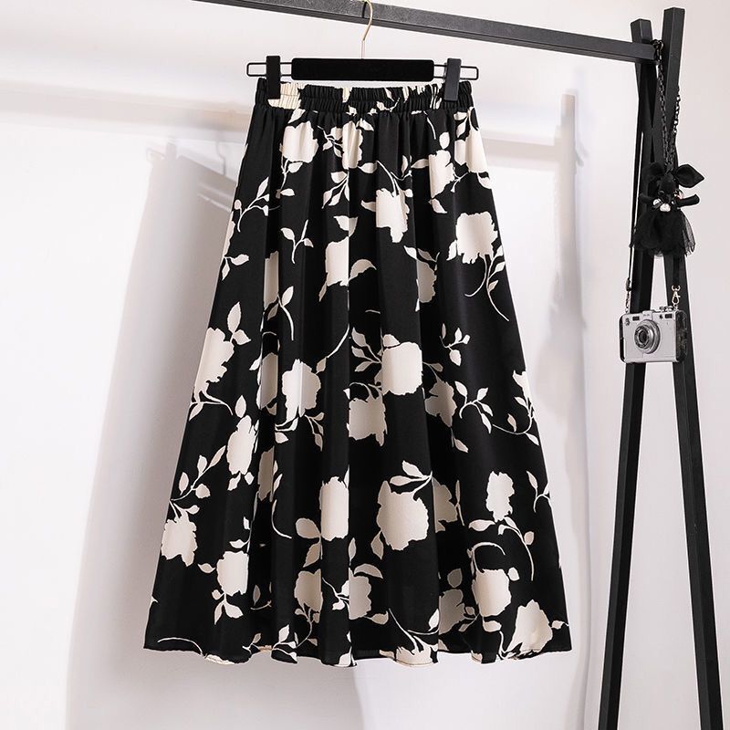 Rok Setengah Badan Sifon K6F Rok Payung Wanita Ukuran Besar Model Panjang Sedang Musim Panas 23 Rok Besar Terlihat Langsing A-Line Pinggang Tinggi Mudah Dipadu Padan Model Baru Musim Panas