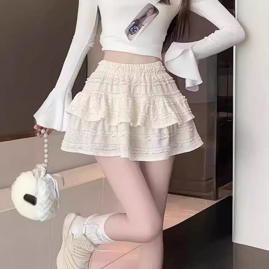 Musim Panas Industri Berat Renda Bunga Jacquard Kosong Dipakai Tumpukan Alat Netral Versi Korea 2025 Rok Setengah Badan Indah Renda