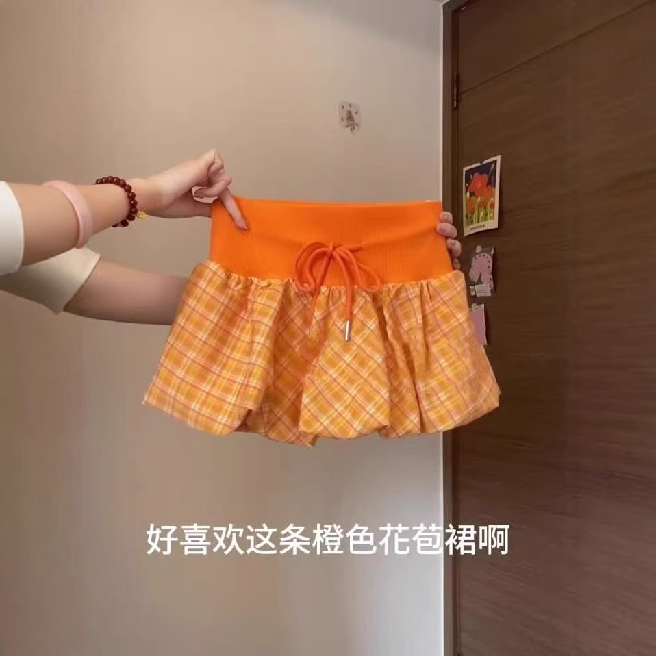 Rok celana dalam kotak-kotak gaya Korea, rok Dalaman tidak beraturan pinggang tinggi gaya Korea 3016