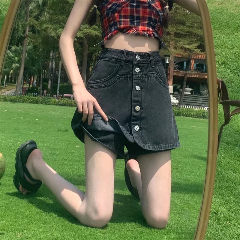 Celana Rok Setengah Tubuh Denim Kancing Niche Gaya Desain Pinggang Tinggi Gaya Korea Celana Rok Pendek Wanita Ukuran Besar Wanita Hot Produk Baru Musim Panas Trendi