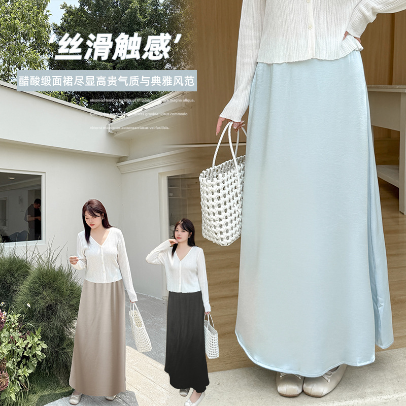 Rok Setengah Badan Satin Asetat Model Prancis Biru Rok A-Line 232260 Wanita Ukuran Besar Model Baru Musim Panas 2025 Rok Slip Pinggang Tinggi