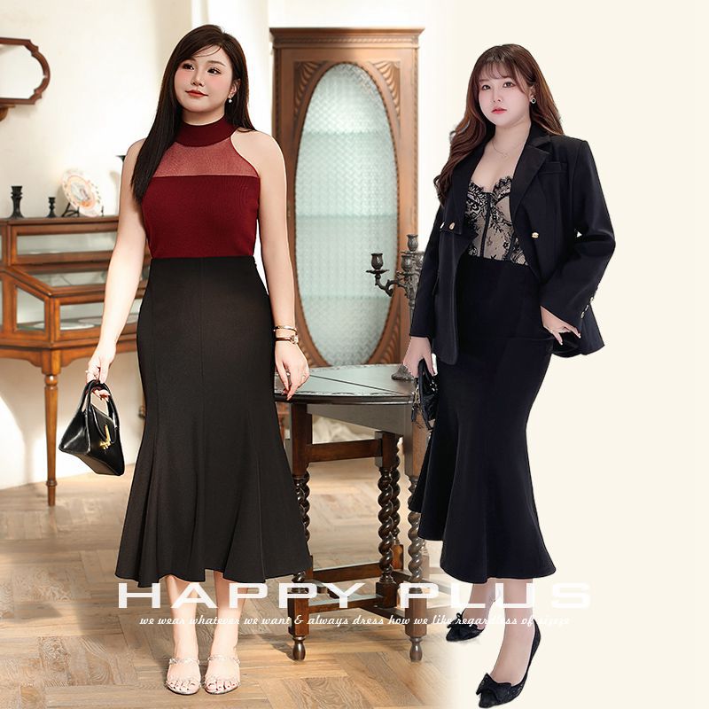 Rok wanita populer lintas batas Jepang, rok ayun belah samping 200kg pinggang tinggi ukuran besar