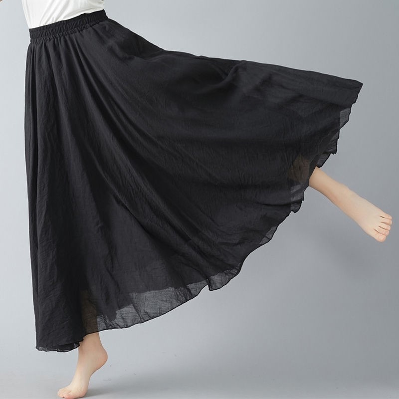 Ramie rok katun wanita pinggang elastis pelangsing serbaguna gadis gemuk ukuran besar katun dan linen rok a-line ayunan besar