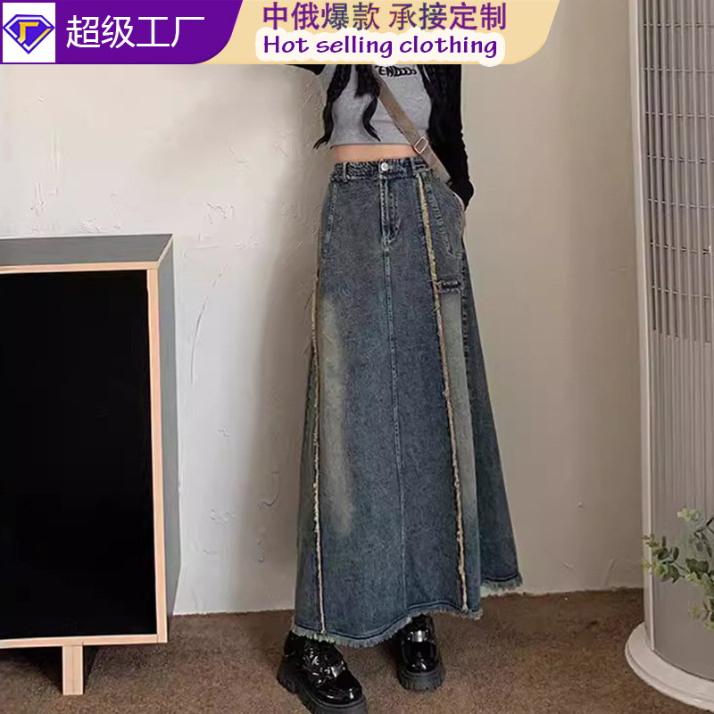 AliExpress 2025 Rok Setengah Badan Tali Tali Lintas Batas Eropa Amerika Pinggang Tinggi Elat Ukuran Besar Rok Panjang A-Line Stok Stok Stok