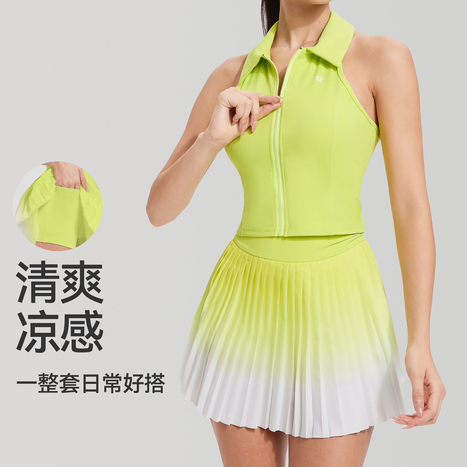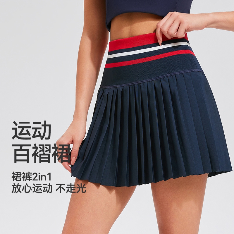 女子网球裙速干运动半身裙健身瑜伽羽毛球带内衬A字时尚百褶短裙