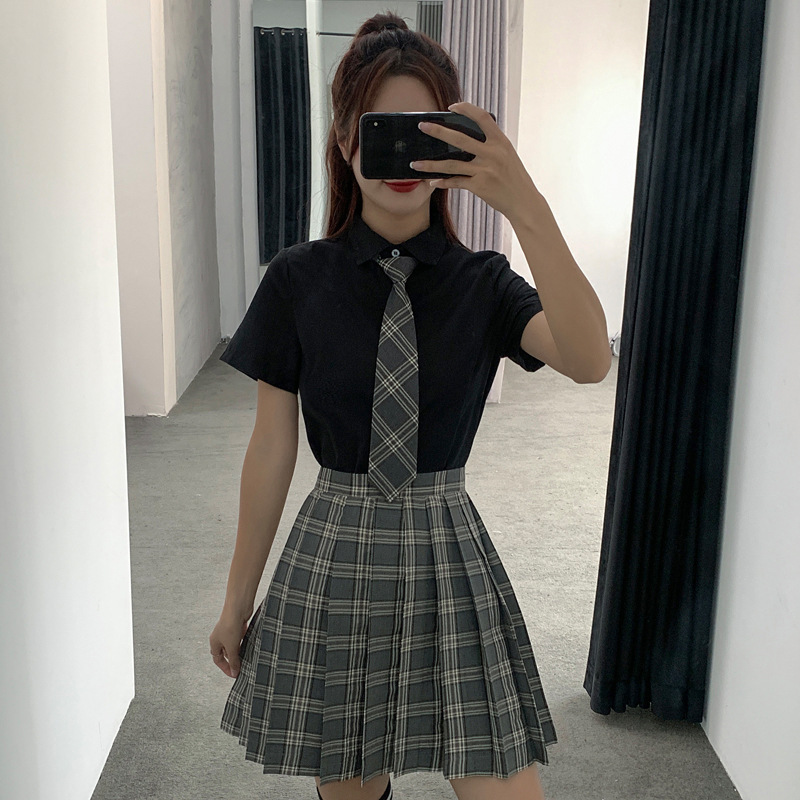 Setelan Seragam JK Asli untuk Siswa Perempuan Kemeja Gaya Murni Kemeja JK Membentuk Pinggang Terlihat Kurus Rok Lipit Dua Set
