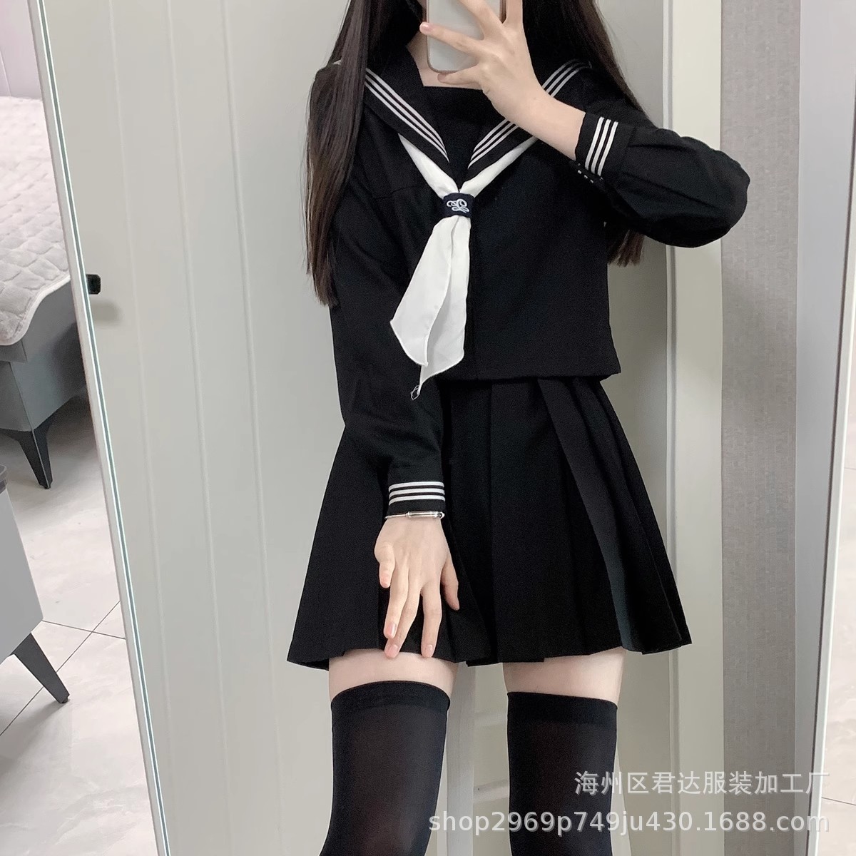 JK Seragam JK Orthodox Pakaian Pelayan Tiga Buku Hitam Model Dasar Rok Pendek Pakaian Musim Panas Wanita Pelajar Jepang Gaya Preppy