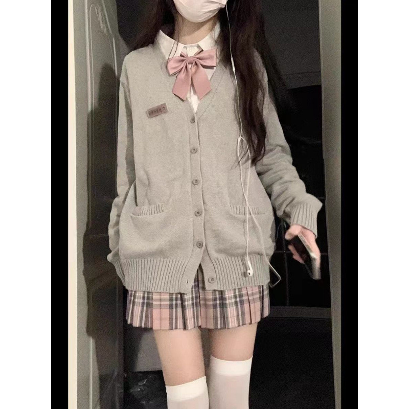 Set Kardigan Jepang Musim Gugur dan Musim Dingin Seragam JK Terbatas Persik Putih