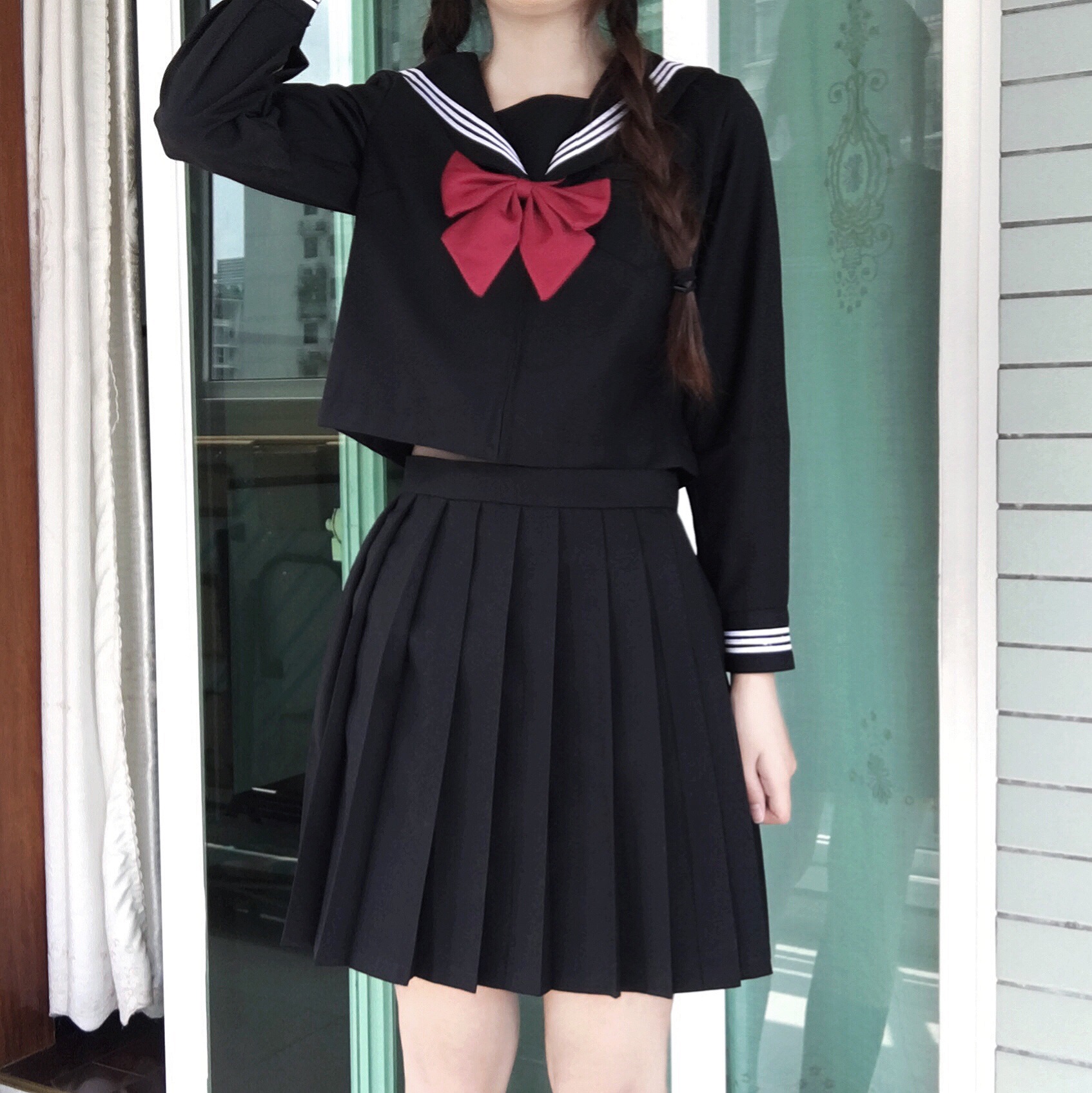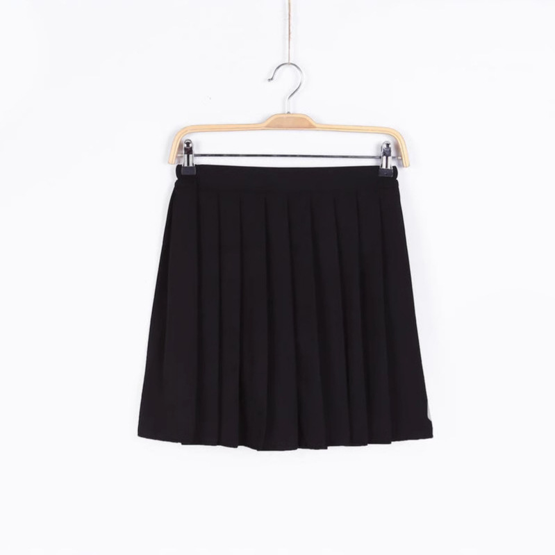 Seragam Gaya Kampus JK Musim Panas Tipis Gaya Jepang Rok Pendek Warna Hitam Warna Polos Rok Setengah Panjang Rok Lipit