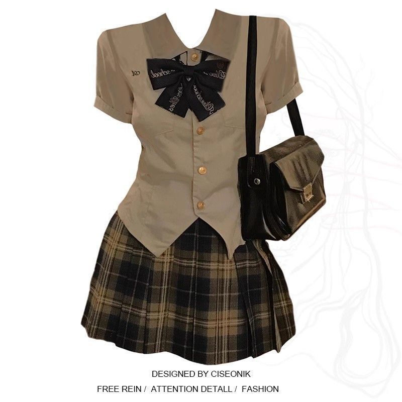 Setelan kecil gaya preppy rok pendek musim panas rok pendek seragam Jepang JK kemeja pendek wanita setelan dua potong