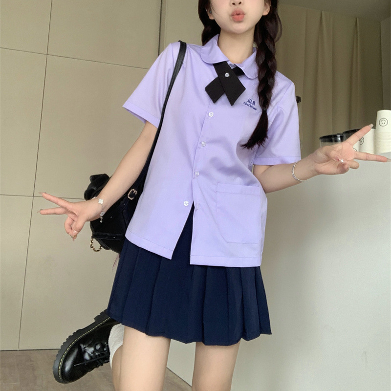 Seragam Sekolah Gaya Thailand Kemeja Gaya Sekolah Anak Perempuan Model Lengan Pendek JK Seragam Wanita Musim Panas Bordir Ungu Seragam Kelas SMA