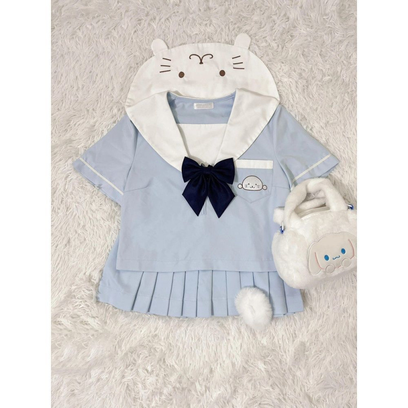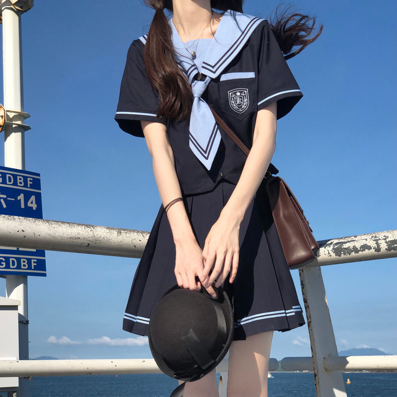 Wonder Fog JK Pakaian pelaut Perguruan Tinggi Setelan Seragam JK Rok Lipit untuk Sekolah Musim Panas Lengan Pendek