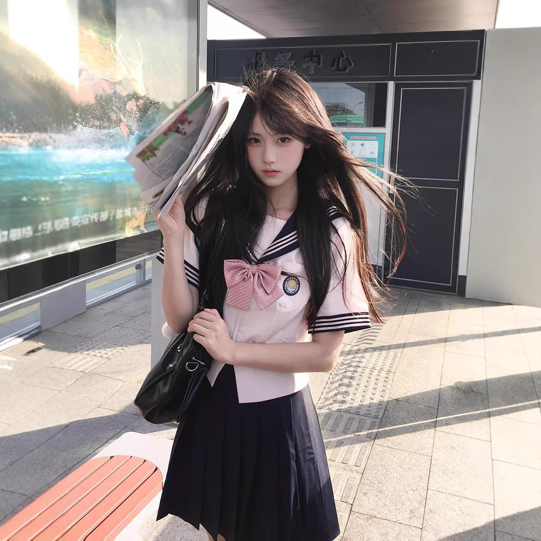 Pakaian pelaut Setelan JK Seragam Wanita Musim Sakura Rok Lipit Musim Panas Wanita JK Akademi Jepang