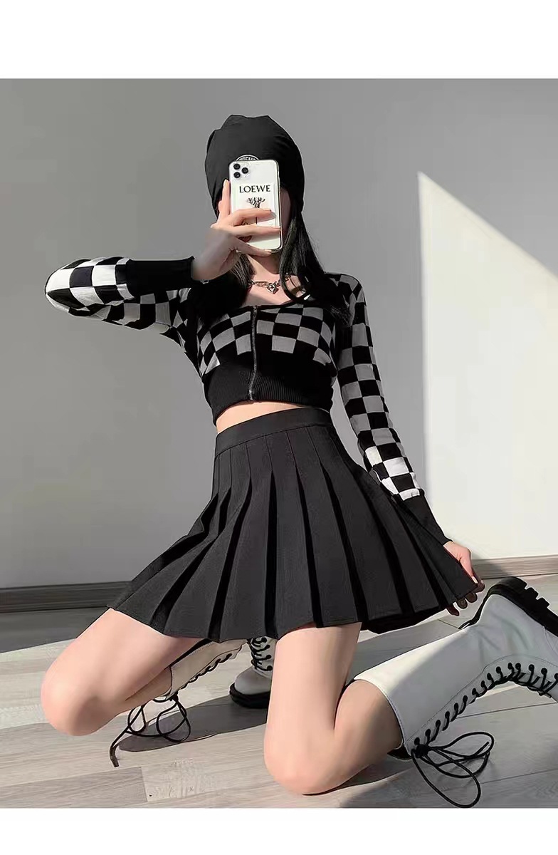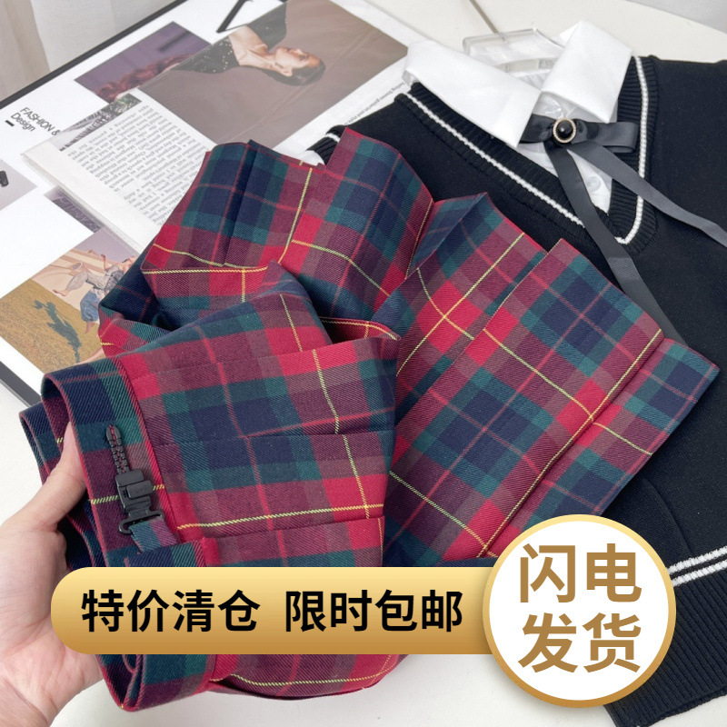 Rok Lipit Kotak-Kotak Rok Setengah Badan Versi Korea Rok Setengah Badan A-Line Pinggang Tinggi Model Pendek JK Rambut Lurus Lintas Batas Pabrik Penjualan Langsung