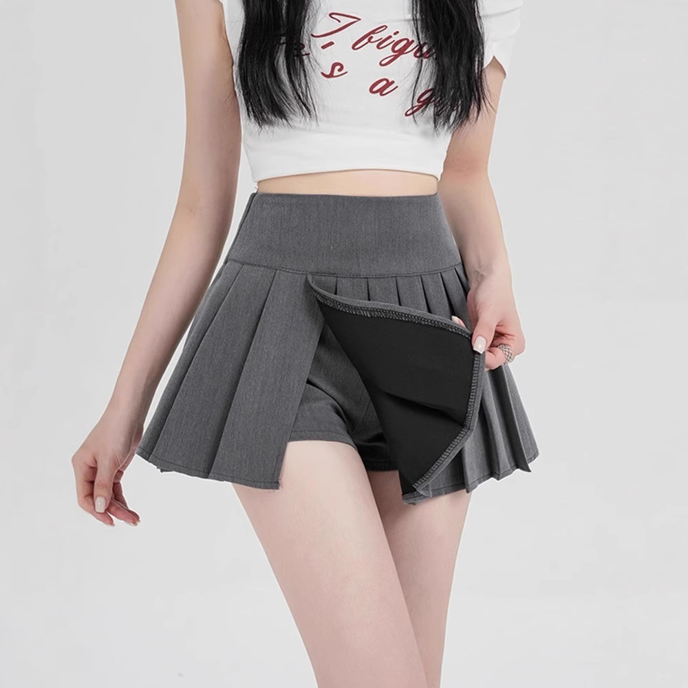 Rok Setengah Badan Setelan Bercabang Wanita Rok Lipit Jk A-Line Pinggang Tinggi Model Baru 2025 Musim Panas Celana Rok Pendek Pria Kecil
