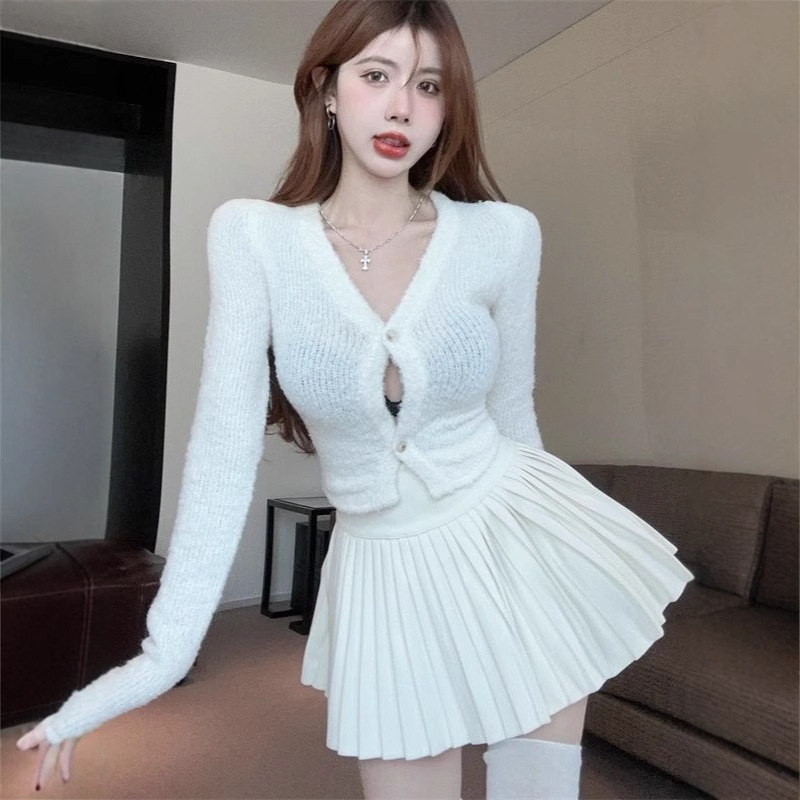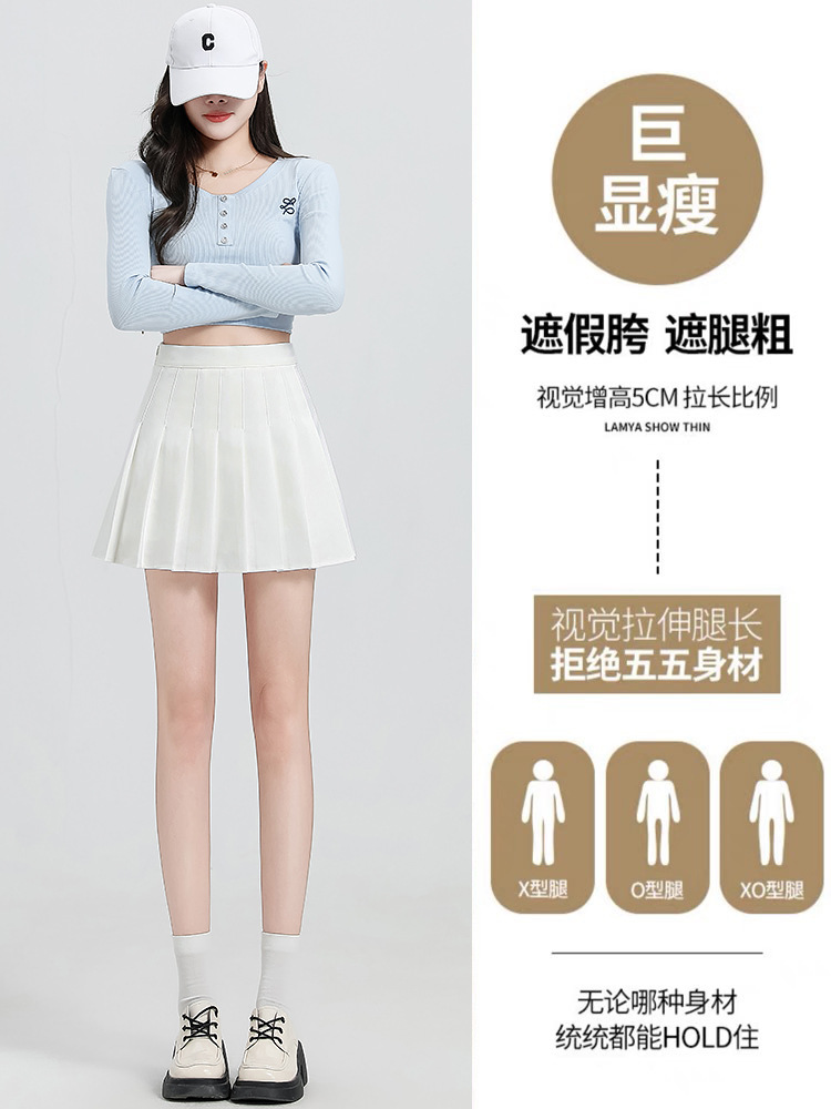Rok Lipit Warna Putih Orang Kecil Rok Setengah Badan Pinggang Tinggi Anti Terang Pakaian Wanita Musim Panas Gadis Pedas Rok Pendek A-Line Rok Setengah JK