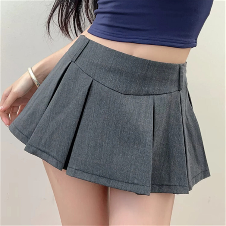 Rok A-line Super Pendek Pinggang Rendah Seksi Gaya Amerika Rok Lipit Murni Olahraga Anti Cahaya Gadis Manis dan Pedas Rok Setengah Badan Jk