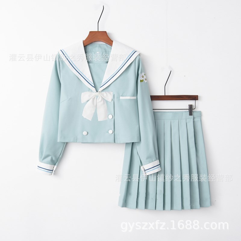 Xiaojin setelan gaya kuliah wanita setelan seragam sailor wanita jk dasar Jepang orthodoks gunung Zhilan asli lengan pendek