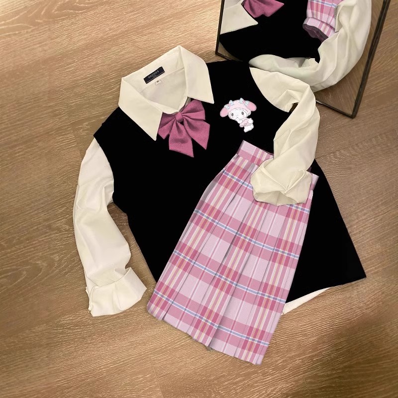 Pakaian Seragam JK Asli Set Lengkap Gaya Kampus Sweater Mudah Dipadu Padan Longgar Kardigan Kemeja Lengan Panjang Rok Kasual Setelan Siswa